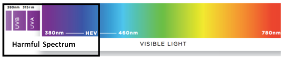 We have developed a multi-layer blue-light filter that maximizes protection for the viewer. The blue-light screen protector has also been made to withstand impacts and protects the screen from damage and scratches. VizoBlueX both protects your screen and eliminates Blue-Light health hazard. Humans see light spectrum from 380 to 780nm. UV (100-380nm) and Blue light (480~390nm) are generated by the screens of all electronic devices and can cause chronic injuries to the eyes, eye fatigue, soreness and more serious eye related conditions. Most harmful is the lower blue light spectrum close to the invisible UV light. Higher range of blue light spectrum is required for humans to see the blue color and thus the screen in full color. Thus, the blue light spectrum has 3 parts: 1. UV and close to UV spectrum lights – highly harmful (100 to 390nm) 2. Low level Blue light (Highest Energy Blue light) – highly harmful (390 to 420nm) 3. Mid and upper level Blue light – increasingly less harmful and needed for humans to see blue color in an image (420 to 480nm)