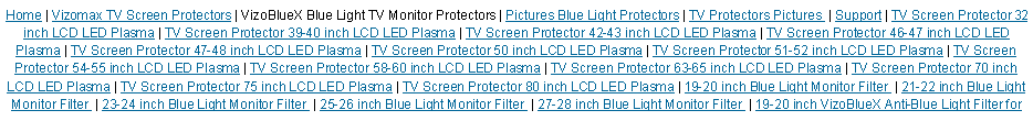 Vizomax TV screen protector has the following applications: LCD TV screen protector, LED TV screen protector, Plasma TV screen protector, flat screen TV screen protector. Our premium Plasma / LCD / LED TV Screen Protector blocks 96% to 99% of the harmful UV radiation. Our antiglare LED TV screen protector, LCD TV Screen Protectors and plasma TV screen protector block over 99% of harmful UV emissions. Anti-scratch on our premium and antiglare TV screen protectors prevents easy scratching from abuse and children activities. Our TV screen protectors have increased 1/4 inch thickness that both ensures sufficient screen protection and prevents the Vizomax TV screen protector from flexing in front of the TV display. Vizomax TV screen protectors are manufactured to fit Sony, Samsung, LG, Sharp, Sanyo, Vizio, Panasonic, Philips, RCA, Toshiba, Mitsubishi, Emerson, Pioneer, Hitachi, Insignia, Magnavox, Element, Haier, Sylvania, Viore, Seiki, AOC, Proscan, Apex, Sceptre, Sceptre, Mitsubishi .. and virtually all other LED, LCD and Plasma TV’s with 26, 32, 37, 40, 42, 46, 47, 50, 52, 55, 60 and 65 inch screen diagonal. © Copyright 2009 VizomaxTM. All rights Reserved. Limited Liability; Contact us:Sales@vizomax.com |